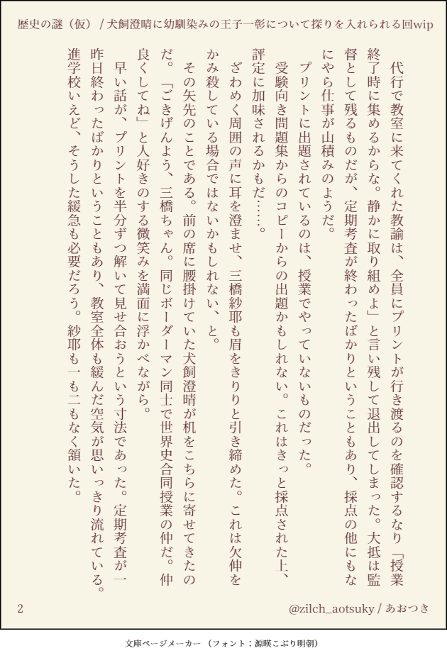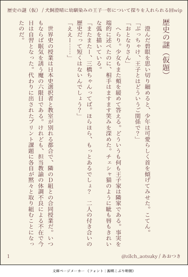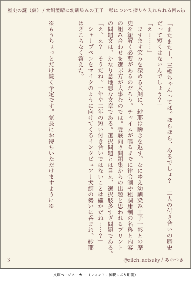 そんなわけで。Twitterにも上げたのですが、今現在執筆中のおはなしwipです。