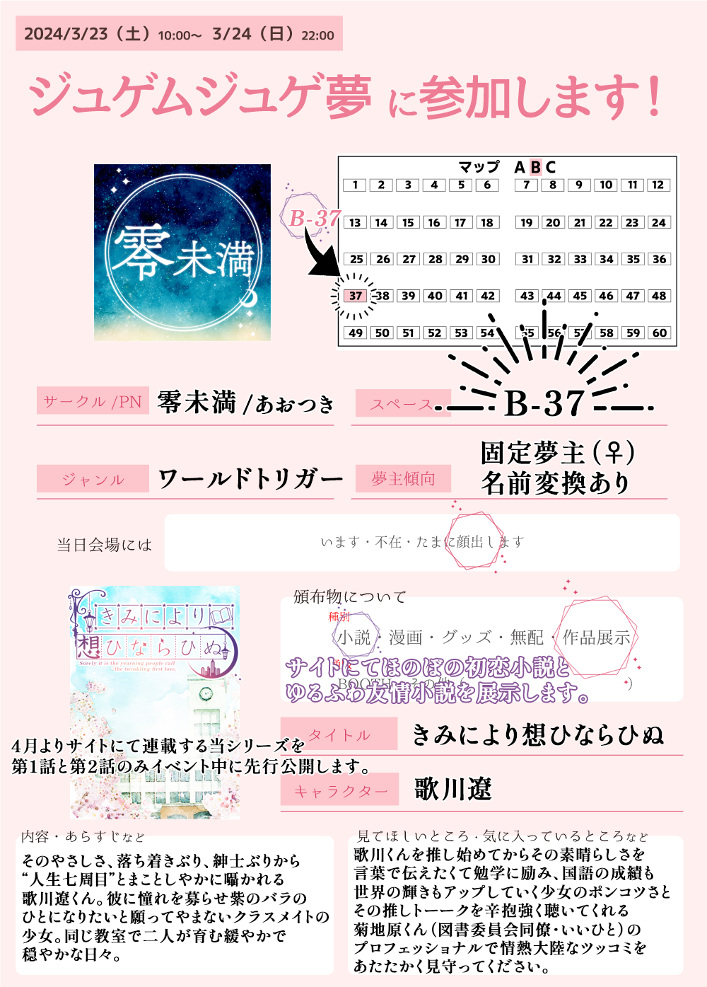 こちらでの告知が遅くなりましたが、3/23・3/24に開催されるwebイベント「ジュゲムジュゲ夢vol.9」 に参加します!